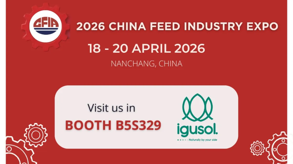 Igusol, referente en el desarrollo de soluciones naturales para la nutrición animal, estará presente en la China Feed Industry Expo (CFIA), que se celebrará en Nanchang del 18 al 20 de abril.