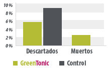 Figura 2. Impacto de la inclusión de GreenTONIC sobre el porcentaje de lechones descartados y muertos en lactación.