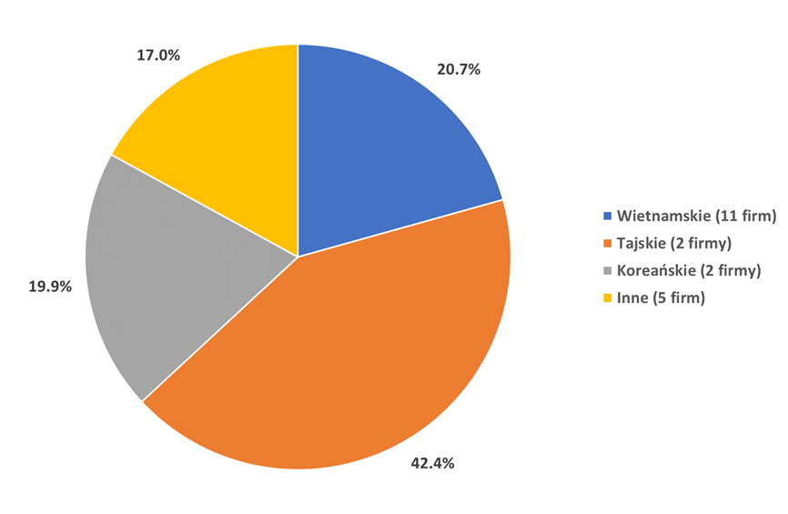 Według danych zebranych przez zespół Tonisity, jeśli weźmiemy pod uwagę 20 największych graczy, reprezentujących populację loch wynoszącą około 700 000 sztuk, okazuje się, że tylko 21% jest własnością 11 wietnamskich przedsiębiorstw (patrz ryc. 1). Oznacza to, że tylko 9 FIE posiada ponad pół miliona loch i wszystkie należą do pierwszej 10.