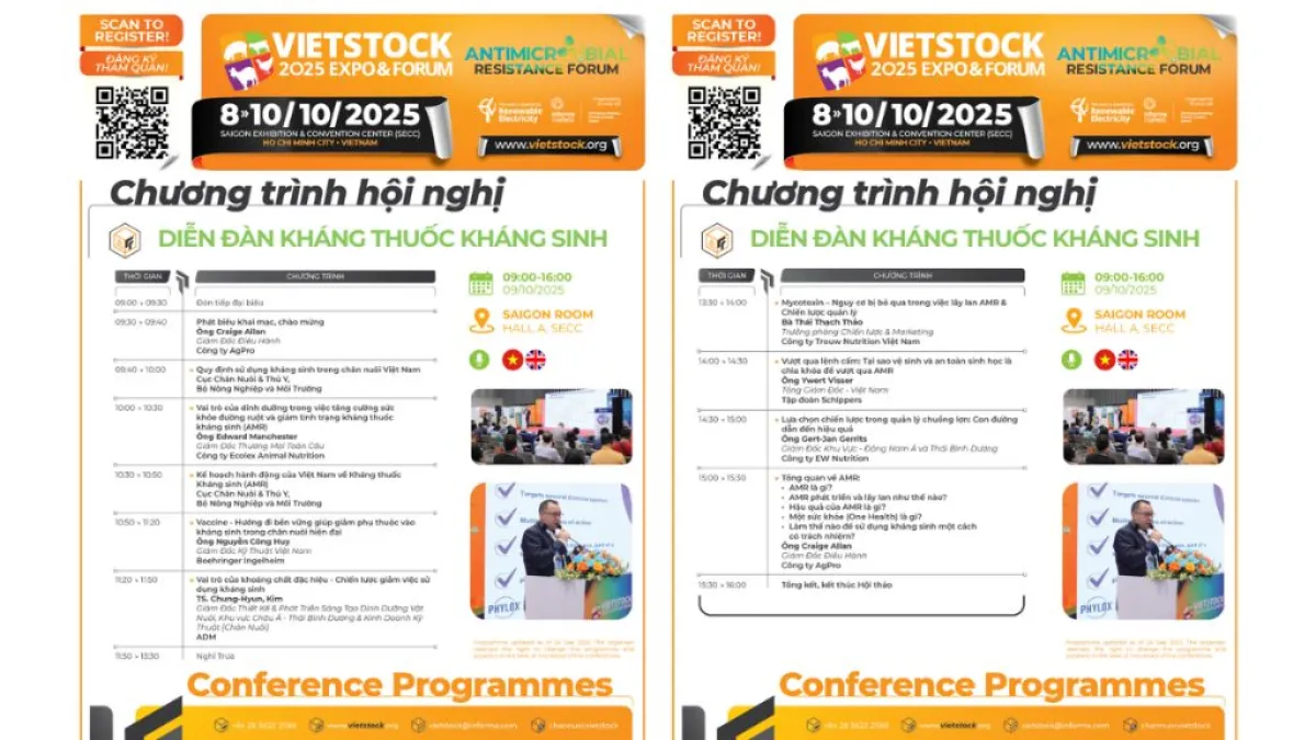 Kháng thuốc kháng sinh (AMR) đang trở thành thách thức lớn của ngành chăn nuôi Việt Nam, bắt nguồn từ tình trạng lạm dụng và sử dụng thuốc chưa đúng cách. Nhằm nâng cao nhận thức và đưa ra giải pháp thiết thực, Vietstock 2025 lần đầu tiên tổ chức Diễn đàn Kháng thuốc kháng sinh, nơi các chuyên gia hàng đầu sẽ cùng phân tích vấn đề và chia sẻ những định hướng hành động cụ thể cho cộng đồng.