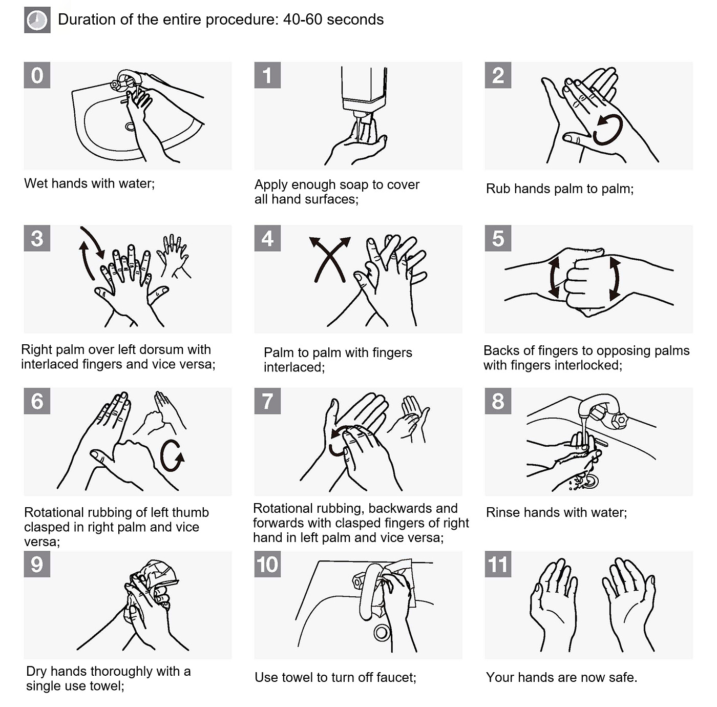 Hand hygiene technique with soap and water