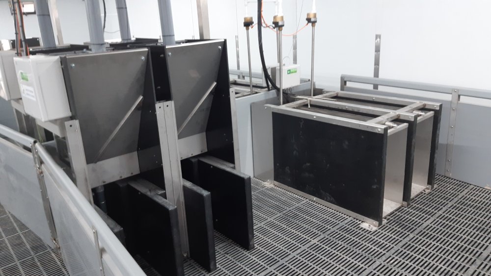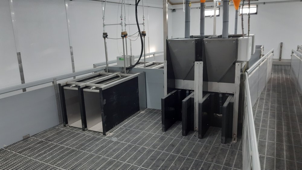In the weaners unit of the farm, the pens are fitted with the Pig-Insight connected feeders and drinkers, which allows to individually follow and manage water and feed consumption. A weighing system installed on the drinkers also makes it possible to register and follow the growth of the animals over the time.