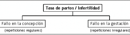 La figura 1 muestra cómo una baja tasa de partos o infertilidad puede ser de dos tipos: fallo en la concepción (causa principal de repeticiones regulares) o fallo en el mantenimiento de la gestación (causa de repeticiones irregulares).