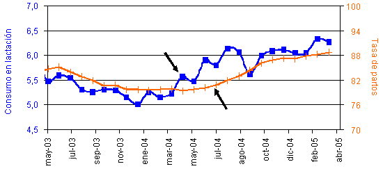 - el consumo en las tres últimas semanas de lactación no está influenciado por la ingesta en la lactancia temprana, y