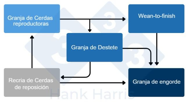 Manejo y gestión de las granjas de cerdos y del trabajo en cada fase de producción: manejo en gestación, cebo, manejo en bandas, destete, bioseguridad
