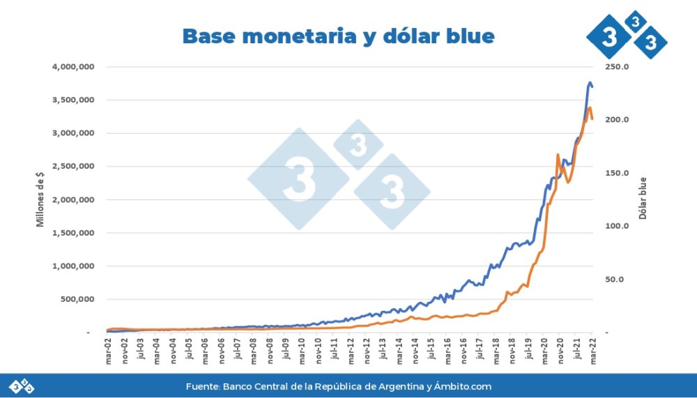 Por otro lado, tenemos que la alta demanda de dólares también es consecuencia natural del financiamiento del gasto público, ya que si hay un exceso de oferta de pesos argentinos va a haber un exceso de demanda de dólares (Gráfico 2).