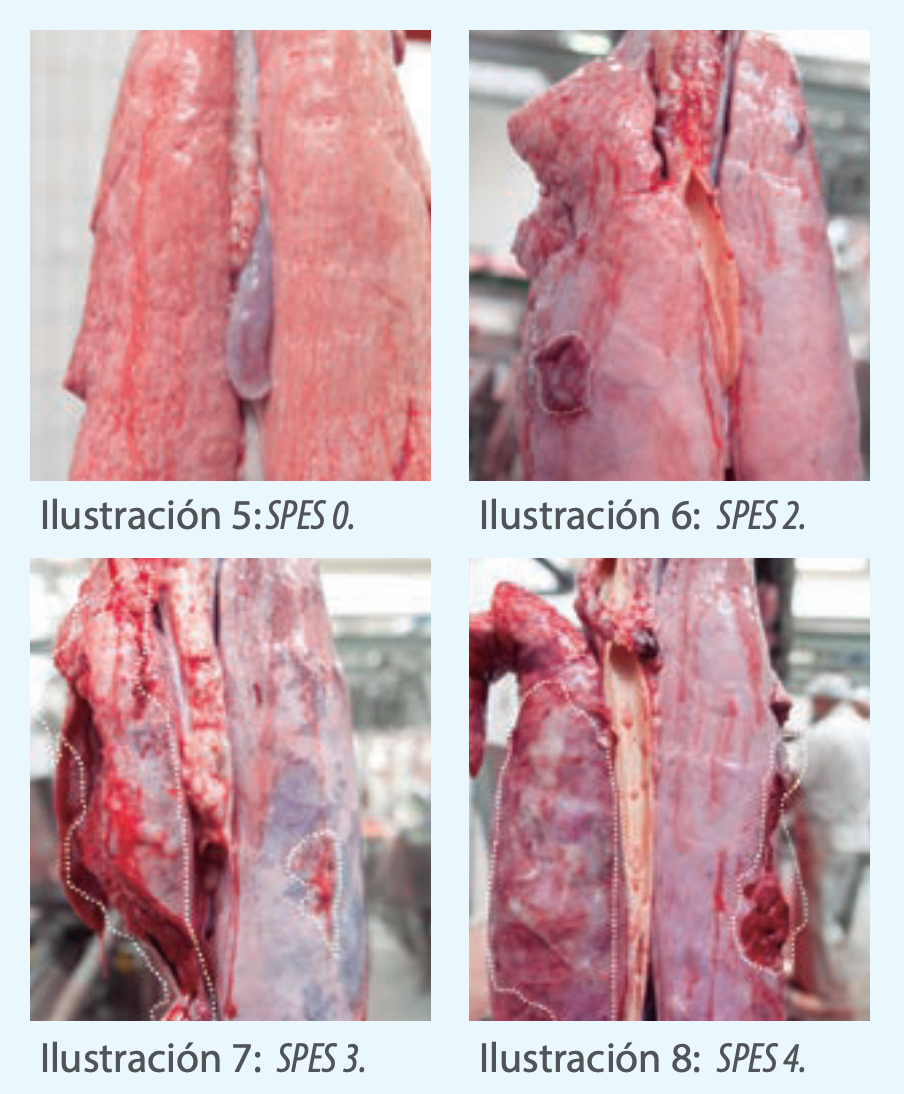 Para la valoración de forma objetiva de las pleuritis dorsocaudales en matadero se utiliza el sistema SPES , desarrollado por investigadores del Izsler (Dottori et al., 2007).