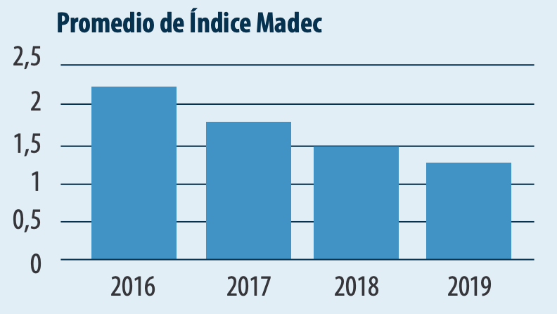 En la Tabla 1 y Gráfica 1 que se presentan a continuación se puede observar la evolución del índice Madec a lo largo de los últimos 4 años.