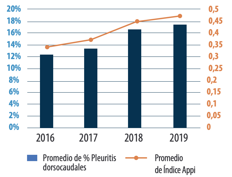 En la Tabla 3 y Gráfica 3 se muestra la evolución de las pleuritis dorsocaudales e índice Appi.