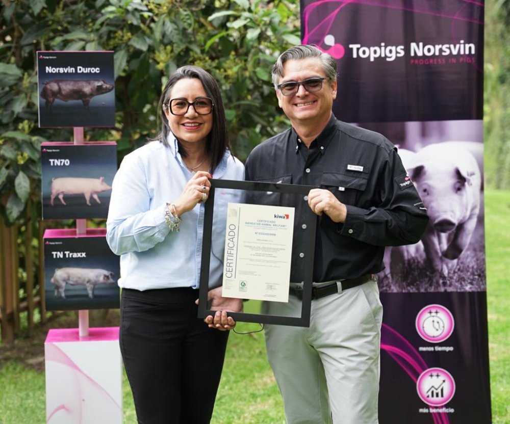 La empresa que lo ha obtenido es Topigs Norsvin Ecuador, compañía líder de mejora genética porcina reconocida por su enfoque innovador para la obtención de una producción rentable. Concretamente, ha sido su granja Núcleo Borja, ubicada en la localidad ecuatoriana de Napo, la que lo ha recibido. “Este certificado es un testimonio del compromiso de la empresa con el bienestar animal y la calidad en la cría de animales implementando buenas prácticas de manejo. Núcleo Borja ha demostrado que es posible equilibrar la producción porcina rentable con el bienestar animal y la sostenibilidad, y esto es algo que debemos celebrar”, ha señalado Patricio Ajitimbay, Country Manager de Kiwa BCS en Ecuador, durante la ceremonia de entrega del certificado, a la que ha asistido una nutrida representación de la empresa ecuatoriana entre la que se encontraba su Gerente General, Mirza González.