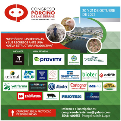 Con la ciudad de Villa Carlos Paz como sede, se desarrollará el 20 y 21 de octubre el Congreso de Producción Porcina de las Sierras 2021 bajo la consigna “Gestión de las personas y sus recursos ante una nueva estructura productiva”. Serán dos días de conferencias que estarán a cargo de destacados especialistas que tratarán los temas más importantes, desde múltiples enfoques, para el desarrollo sustentable y seguro de una industria porcina nacional.