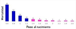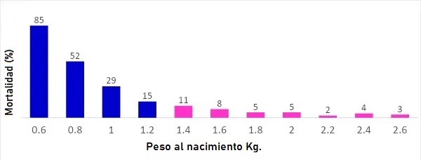 Las dificultades enfrentadas por las hembras durante el parto no sólo afectan en número de natimuertos, sino también el número de lechones que se pierden en los primeros días de vida. Esto es porque, aunque sobrevivan al parto, los lechones que sufren con la mala oxigenación de los tejidos y/o el rompimiento precoz del cordón umbilical, pueden presentar baja vitalidad en las primeras horas. Los lechones de baja vitalidad, aunque tengan buen peso, son animales que ingieren menor cantidad de calostro debido a su menor capacidad de succión, mayor tiempo para la primera mamada y menor competitividad para llegar a las tetas. En el gráfico abajo, podemos observar que la mortalidad de lechones que nacen por debajo de 1,2 kg. es significativamente mayor que la de lechones que nacen por arriba de 1,2 kg.