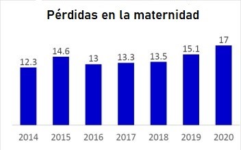 El aumento del número de destetados por hembra por año no fue acompañado proporcionalmente por el aumento en el número de nacidos por hembra. Eso se debe a una mayor proporción de lechones que mueren en la maternidad. En los gráficos abajo, podemos observar que hubo un aumento del 16% en el número total de nacidos por hembra entre 2014 y 2020. Sin embargo, en ese mismo período, el aumento en las pérdidas fue del 38%.