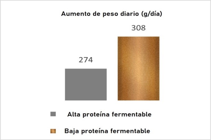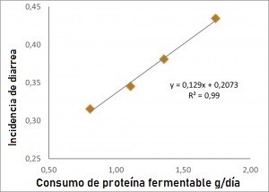 Minimizar al máximo la cantidad de proteína fermentable -que no es más que la proteína no digerida adecuadamente que llega al intestino grueso y se transforma en substrato para la fermentación de bacterias- es una estrategia importante en nutrición para disminuir la incidencia de diarreas.