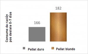 Otro parámetro fundamental en la calidad del pellet es la dureza. La dureza impacta de forma directa en el consumo por destete y en el desempeño de los animales. Por poseer una gran cantidad de ingredientes lácteos y otros componentes más sensibles a las altas temperaturas, es fundamental el control y uso de tecnologías de procesamiento en la pelletización para raciones en la etapa de recría. La calidad del proceso de pelletización también puede ser evaluada por el PDI (del inglés pellet durability index). Este valor es obtenido a través de equipamientos que simulan vibraciones y movimientos que existen desde la producción del pellet hasta la llegada al comedero, evaluando la cantidad de pellet intactos. Valores por encima de 94% son considerados pellet de alta calidad se gún el PDI.