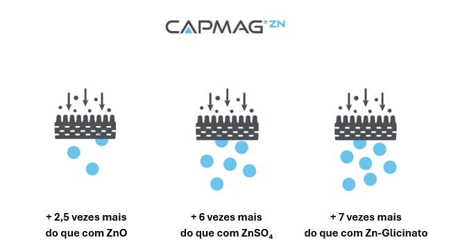 CAPMAG® Zn es una fuente patentada de zinc basada en una tecnología de protección con magnesio, diseñada para mejorar la estabilidad del zinc y su liberación dirigida a lo largo del tracto gastrointestinal.