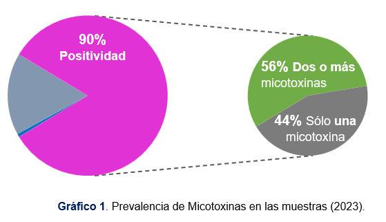 - El 90% de las muestras analizadas estaban contaminadas con micotoxinas, con un aumento del 10 % respecto al año anterior.