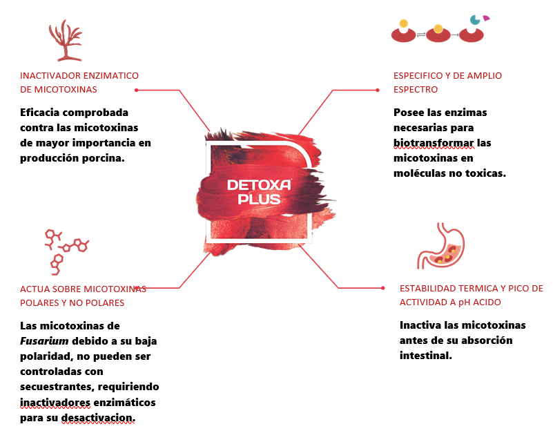 - Uso de aditivos específicos: incorporar agentes inactivadores en los alimentos que posean un amplio espectro de acción contra las micotoxinas más prevalentes.