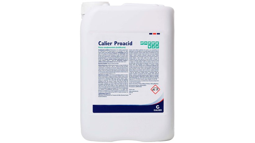Calier, la empresa del Grupo Indukern dedicada a la salud y el bienestar animal, lanza CALIER PROACID, un acidificante líquido de aplicación en el agua de bebida y pienso. Este producto contiene ácidos orgánicos e inorgánicos, tales como ácido fórmico, ácido fosfórico, ácido láctico, sales amónicas y otros componentes de importante valor añadido como sulfato de cobre, sulfato de zinc, aceites esenciales de orégano y ácido tánico.