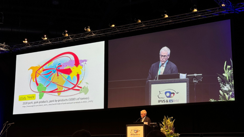 Uno de los temas clave abordados fue el colapso de las barreras geográficas y el aumento exponencial de las comunicaciones. En la actualidad, existen 58 288 rutas aéreas internacionales que conectan todo el mundo, facilitando la rápida propagación de patógenos porcinos a nivel global. Zimmerman citó ejemplos preocupantes como la Peste Porcina Clásica y la Africana, que afectan a millones de cerdos en todo el mundo, tanto de manera legal como ilegal. Además, mencionó la presencia de muchas enfermedades exóticas que no están en el radar de la producción y que cuentan con controles débiles o inexistentes.