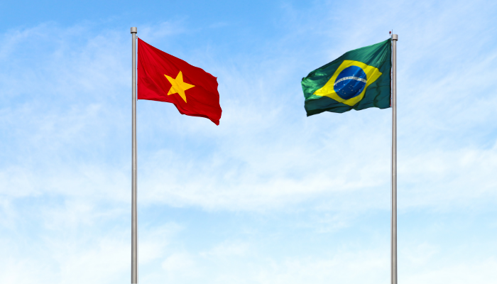 En 2024, Vietnam fue el 18.º mayor destino de las exportaciones brasileñas y el 14.º en el ranking de países importadores. Los principales productos brasileños exportados a Vietnam son materias primas agrícolas, en particular algodón en rama, maíz y soja . El flujo comercial de Brasil con Vietnam en 2024 ascendió a 7700 millones de dólares y la balanza comercial brasileña fue positiva, con 415 millones de dólares. En 2025, Brasil y Vietnam celebrarán 36 años de relaciones diplomáticas.