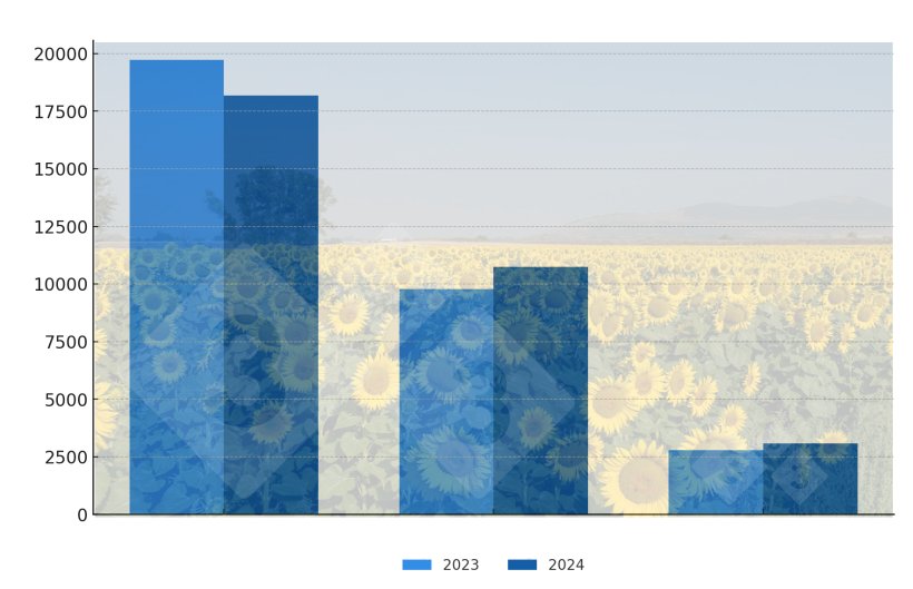 A diferencia de la canola, se proyecta que la superficie sembrada de girasol aumente en un 1,7 %, alcanzando 4,7 millones de hectáreas en 2024. Además, se espera un incremento en el rendimiento del 7,9 %, lo que resultaría en una significativa subida de la producción del 9,7 %, alcanzando 10,7 millones de toneladas.