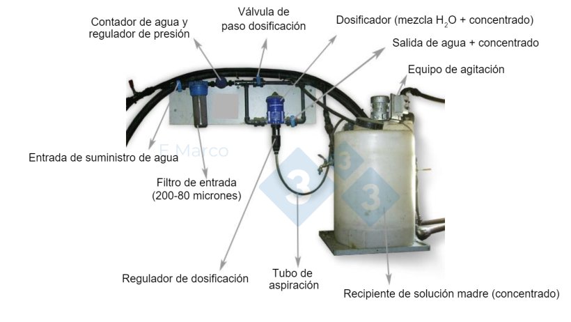 Antes de medicar deberemos saber si el producto que vamos a utilizar es soluble (ver artículo anterior). El depósito para la solución concentrada con homogenizador (agitador) evitará que se produzcan precipitaciones asegurando una dosificación correcta.