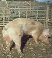 | Figura 7 – Trauma típico al aire libre: verraco con dorso y pata trasera magullados |