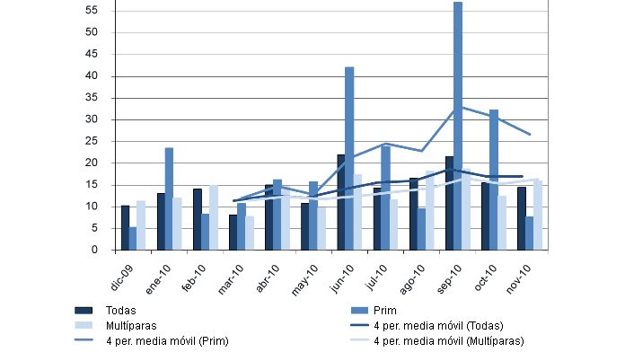 El problema más grave es la falta de nacidos. Además la tasa de repeticiones es algo más elevada de lo esperado, la tendencia en los últimos meses es al alza.