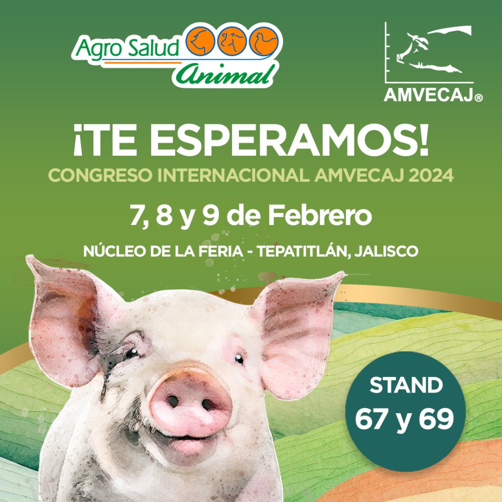 Agro Salud Animal dice presente al Congreso Internacional AMVECAJ 2024. El próximo 7,8 y 9 de febrero los esperamos en el stand 67 y 69, en el Núcleo de la Feria en Tepatitlán, Jalisco