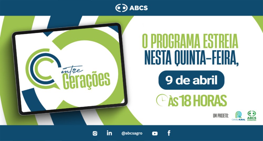 ABCS e Canal Rural ampliam a voz do agro com o programa Entre Gerações, que estreia nesta quinta-feira!
