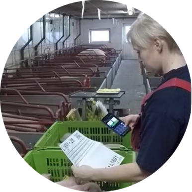 Entrada de datos en la PC en la oficina o en el dispositivo móvil directamente en el establo. La capacidad de leer código QR y la verificación instantánea de datos reducen la tasa de error.