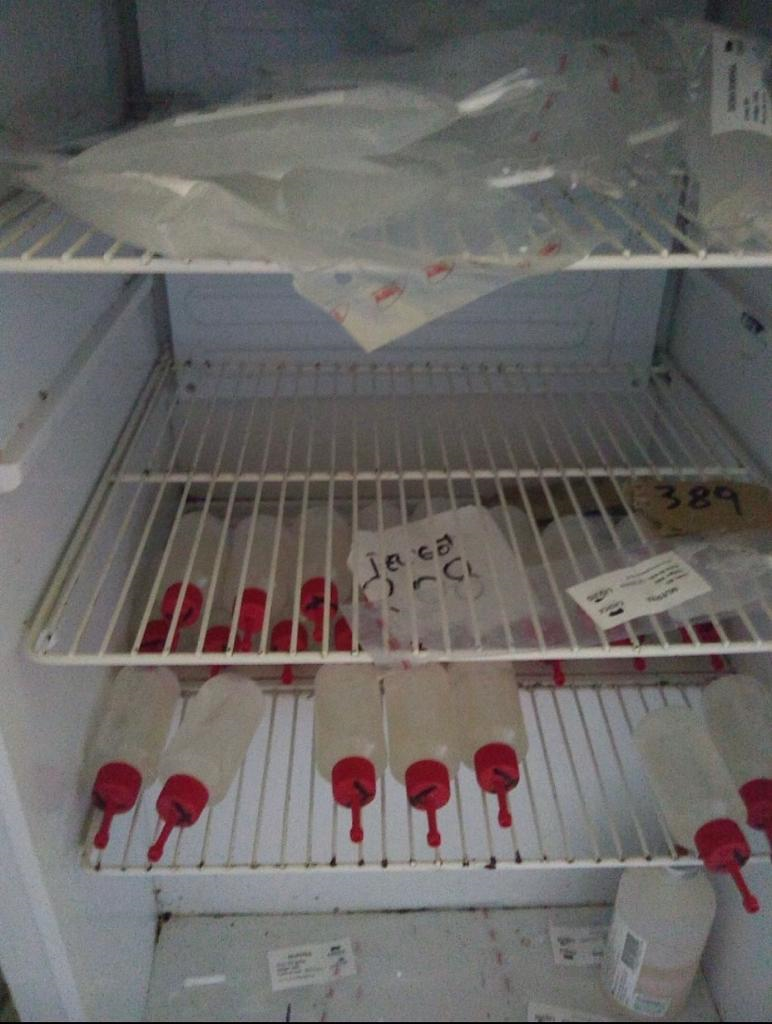 Excesiva cantidad de dosis en la conservadora. Nótese abajo a la derecha en un envase (el cual evita la circulación de aire) que se encuentra una “bolsa de semen a granel”.