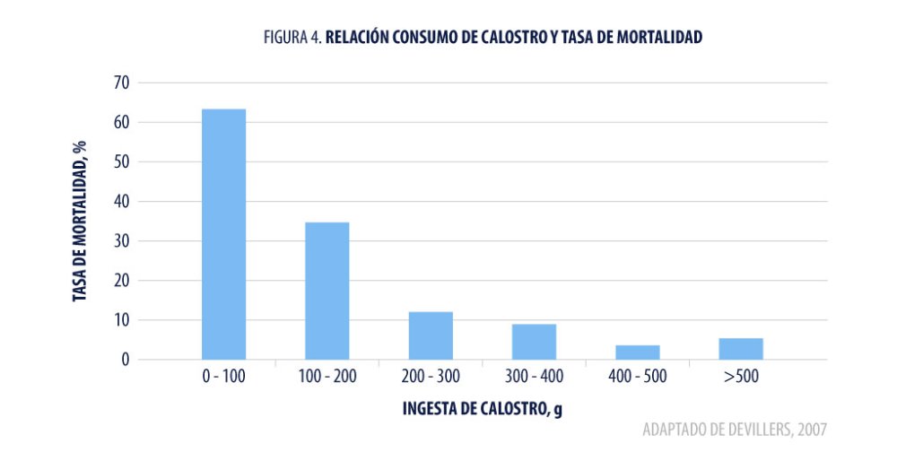 La ingesta de calostro es sin duda uno de los componentes más importantes que contribuye a garantizar la supervivencia de los lechones (Tenbergen y Metzenger, 2018), ya que provee el 75% de la energía que se requiere en las primeras 24 horas de vida (Farmer y Edwards, 2020), además de proporcionarles nutrición e inmunidad y jugando también un papel crítico en el crecimiento y maduración del intestino (Pluske, 2016). Por todo lo ya mencionado se debe asegurar el consumo de 250 a 300ml de calostro por lechón durante las primeras 24 horas de vida, considerando que éste es de mejor calidad las primeras 12 a 15 horas posteriores al parto, por lo cual hasta ese momento no es recomendable el balanceo de las camadas. Para lograr una ingesta adecuada, el primer amamantamiento tiene que ser en un periodo de no más de una hora, se sabe que cuando los recién nacidos consumen al menos 200g de calostro la tasa de mortalidad puede ser inferior al 10%, sin embargo, puede superar el 60% cuando está por debajo de los 200g (Devillers et al., 2007).