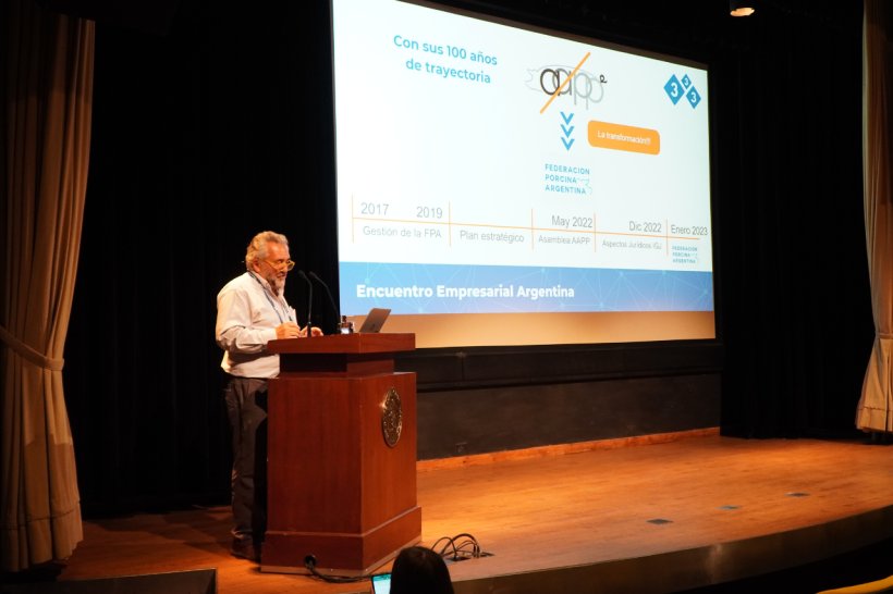 El pasado 9 de marzo, en el primer encuentro empresarial porcino organizado por 333 Argentina, el Sr. Daniel Fenoglio anunció de manera oficial la obtención de la personería jurídica de la Federación Porcina y presentó los objetivos y bases estratégicas de la misma.