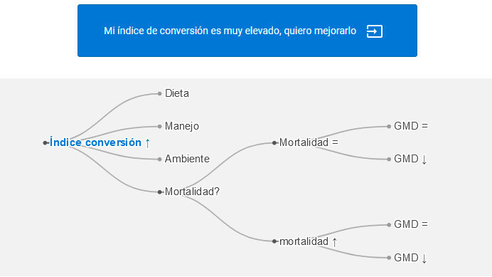 En esta nueva herramienta de 333, Enric Marco nos ofrece sus consejos para mejorar el índice de conversión. Empieza con dos preguntas importantes: ¿Se ha afectado la mortalidad de la granja? y ¿Qué pasa con la GMD? Según el camino que elijas, la herramienta te irá proporcionando las posibles causas por las que el índice de conversión de tu granja no es tan bueno como te gustaría.