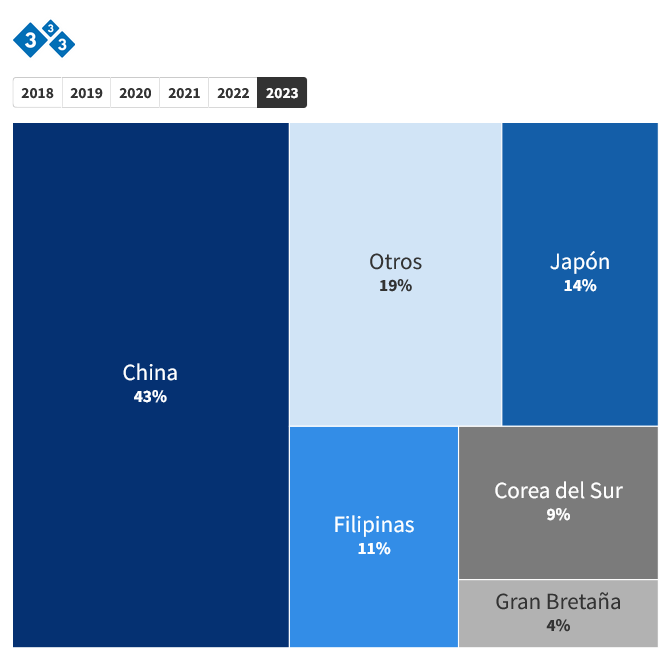 Filipinas, tras dos años situándose como segundo destino, en 2023 volvió a colocarse en tercera posición.