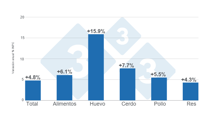 - Según el Índice Nacional de Precios al Consumidor (INPC) para el mes de octubre, la inflación general presentó una variación anual de 4.8 %.