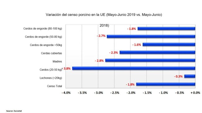 Durante el pasado año, la Unión Europea exportó un total de 4.735.210 de toneladas de carne de cerdo y productos derivados, lo que significa un aumento de más del 20% respecto al año anterior, cuando las exportaciones alcanzaron los 3.938.560 t. El principal causante fue el importante aumento de exportaciones hacia China, que han pasado de las 1.358.480 t en 2018 a las 2.419.490 en 2019.