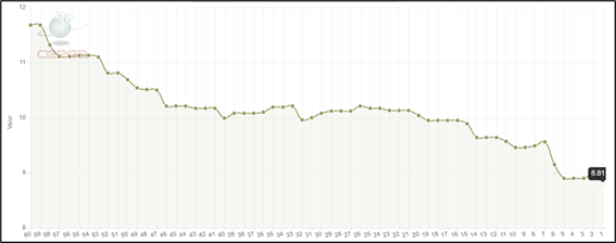 Mesmo com o recuo das cotações do milho e o farelo de soja estável, a queda acentuada do preço do suíno fez com que a relação de troca com os principais insumos da atividade despencasse para um patamar “perigoso”, abaixo de 5,0; um valor considerado de alto risco para determinar prejuízo na atividade, dependendo da produtividade da granja. A última vez que esta relação de troca esteve abaixo de 5,0 foi em dezembro de 2023 (gráfico 6).