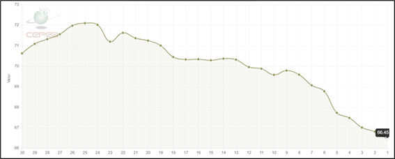 Com o plantio da segunda safra de milho finalizado a “sorte está lançada”. A irregularidade das chuvas em abril elevou os riscos de perdas. As cotações voltaram a cair (gráfico 5) e a percepção é que a safrinha, mesmo que ainda tenha perdas por clima, será grande. A Conab reviu a safra total de milho 2025/26 para 139,6 milhões de toneladas, mas, segundo o Mbagro, não está descartada uma alta de preços mais a frente caso a condição das lavouras piore.