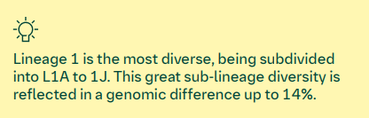 In 2023 the lineage system was refined using available global ORF5 sequences. In summary, it classifies PRRSv-2 into 11 distinct lineages. Some lineages are more diverse than others. Thus, they sub-divided Lineage 1 into L1A-J (the most diverse lineage). Within L1C, there are 5 distinct sub-lineages (L1C.1 – L1C.5). Similarly, Lineages 5, 8 and 9 were also classified into sub-lineages.