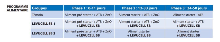 L'Université de Milan a mené cette étude sur 288 porcelets au sevrage afin d'évaluer l'effet de la levure vivante sur les performances des porcelets après sevrage en conditions normales et en limitant l’utilisation d’antibiotiques et d’oxyde de zinc dans un programme d'alimentation en 3 phases (Tableau 1).