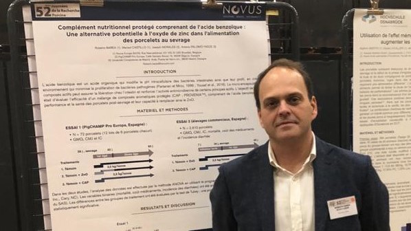 Roberto Barea, responsable technique pour Novus Europe, a présenté un poster sur le PROVENIA ™ CF-Z, acide benzoïque protégé. Dans plusieurs études menées en Espagne, les résultats des essais ont montré que la supplémentation avec PROVENIA CF-Z améliorait les performances, entraînant une meilleure efficacité alimentaire chez les porcelets par rapport à l'utilisation de 2.500 mg / kg de ZnO. En outre, dans l'une des études les porcelets nourris avec PROVENIA CF-Z ont également montré un gain moyen quotidien plus élevé et une nette réduction des frais vétérinaires, de l'incidence des diarrhées et de la mortalité, démontrant ainsi l'effet bénéfique de PROVENIA CF-Z sur la santé intestinale. Ces résultats confirment les résultats antérieurs d´ études expérimentales et commerciales démontrant que PROVENIA CF-Z est un outil précieux à considérer lors du remplacement du ZnO pour éviter les problèmes de santé des porcelets après le sevrage.