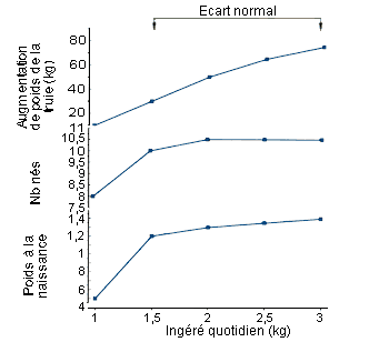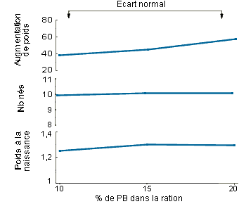 | Figure 4 : Effet de la consommation de protéines sur la productivité de la truie. |