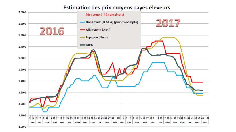 Ce ne fut pas le cas en Allemagne où les abattages sont très soutenus en cette fin d’année, la semaine 48 détenant jusque‐là le record avec 1 053 000 porcs abattus, activité supérieure à celle de janvier et un nouveau sommet a certainement été atteint la semaine passée. La demande est bonne notamment sur certaines pièces comme le jambon et de légères hausses de prix ont été enregistrées. Toutefois, un léger ralentissement dans le commerce est à présent perceptible et certains abattoirs allemands parmi les plus influents pourraient faire pression sur le prix dès la semaine prochaine tandis que Vion aux Pays‐Bas a déjà revu sa cotation à la baisse de 3 cents.