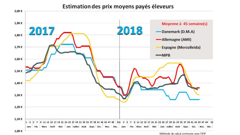 En Espagne, le cours est resté assez proche de la stabilité puisque le retrait est de 0,5 cent, laissant penser que le fond est pratiquement atteint. Il est vrai que l’activité est au maximum de sa capacité et même si les offres sont élevées, les abattoirs restent insatiables. Le marché de la viande est stable depuis des semaines et les entreprises tournent à plein régime pour honorer les commandes jusqu’à la période de Noël, non sans consolider leurs marges substantielles. Sur le marché de l’export, le commerce se poursuit normalement vers le marché européen ainsi que vers l’Asie du Sud-Est. Face aux nombreuses et légitimes interrogations sur la demande chinoise, les experts espagnols estiment qu’il faudra attendre le début 2019 pour voir une augmentation sensible des volumes et surtout des tarifs. Ceci rejoint les analyses du groupe chinois WH Group, mis en cause récemment dans la transformation de produits porcins contenant le virus de la FPA et découverts à Taïwan. Selon leurs propos relayés par Reuters, il va falloir s’attendre en 2019 à une augmentation du prix du porc en Chine, ce qui signifiera une augmentation des importations d’autant plus que la production de porcs va être fortement impactée.
