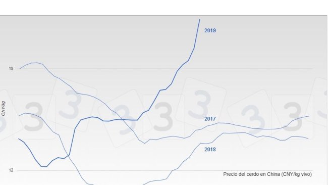 En Chine, il est en train de se passer ce qui n'avait jamais été vu. Le 14 août, le prix a atteint le niveau record des six dernières années : 20,92 yuans par kg vivant. Au cours des quatre semaines suivantes, il a augmenté d’un total de 5,76 yuans : une hausse de 27,50% sur un prix déjà record. Réellement, du jamais vu.