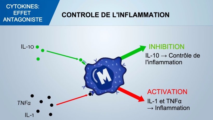 | Contrôle et désactivation de l'inflammation et de l'immunité | IL-10, TGFβ |