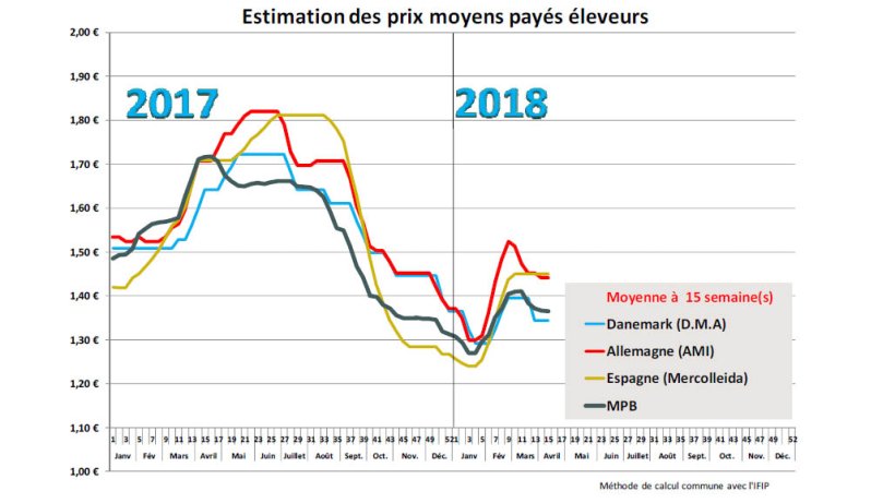 Le cours espagnol reste stable pour la 5ème semaine consécutive et reste parmi les plus hauts d’Europe de manière assez inhabituelle puisque la forte dépendance à l’exportation des entreprises espagnoles les amène à devoir pratiquer des tarifs très compétitifs. Et cela d’autant plus que la demande actuelle est plutôt calme ici aussi, seul le commerce avec le Japon et la Corée du sud sont d’un bon niveau tandis les ventes vers la Chine restent décevantes. Les poids sont repartis à la hausse après les fériés de Pâques et se situent à présent 4 kilos au‐dessus des poids de l’an passé à la même période. Toutefois, les entreprises espagnoles semblent encore tirer leur épingle du jeu dans un marché plutôt à l’équilibre.